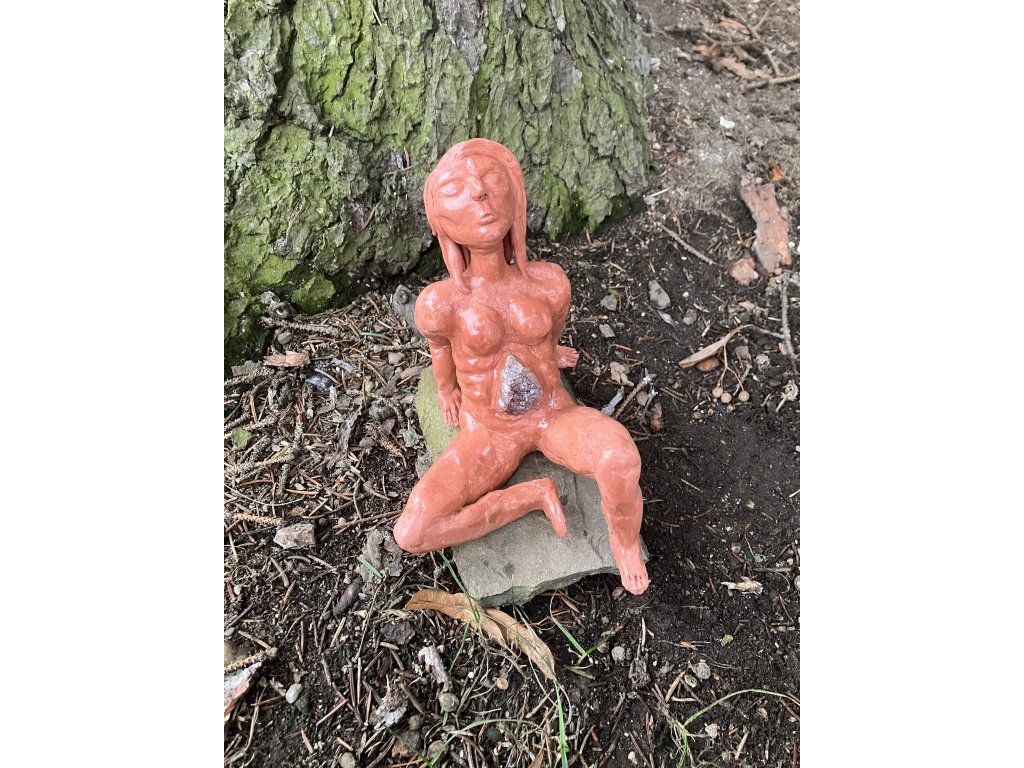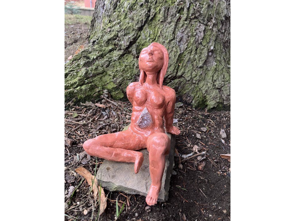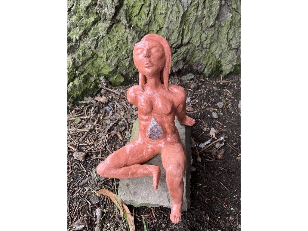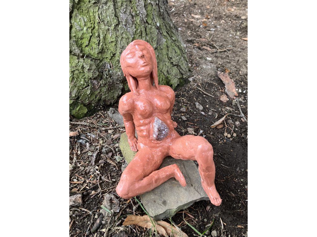 Ametystová bytost je soška znázorňující ametyst v lidské podobě. Je otevřená, zranitelná, v hloubi své duše a zároveň cestuje mezi světy, které jsou nám zatím neznámé. Není dokonalá, je surová, stejně jako ametystová drúza rostoucí z břicha. Jako příroda. Jako každý jeden z nás.