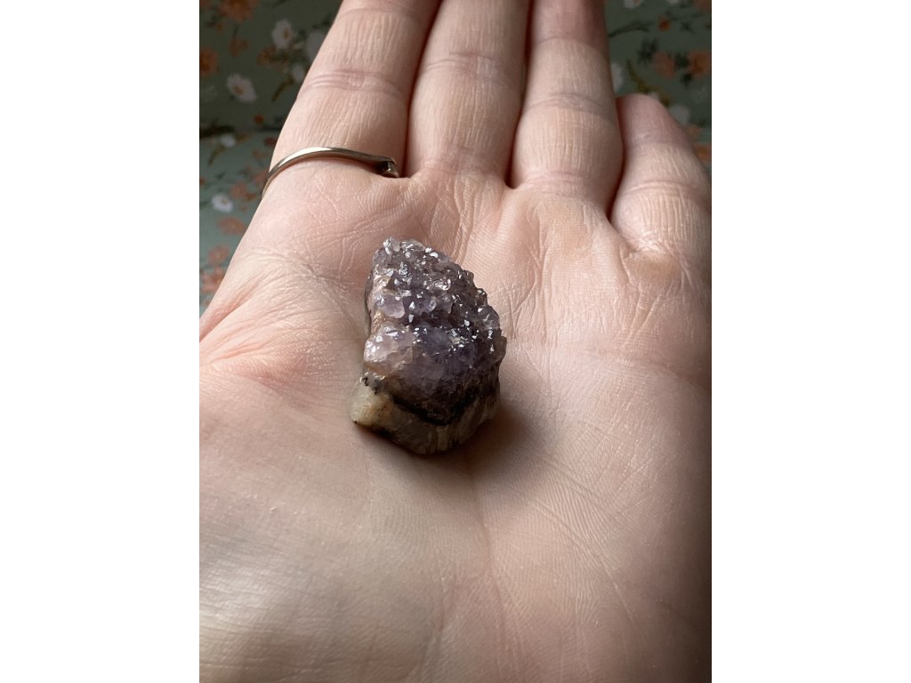 Ametystová drúza je mocný harmonizační a očistný kámen. Její krystalky rozptylují energii do okolí a vytvářejí prostor, kde se dá volně dýchat, uvolnit se a najít vnitřní rovnováhu. Drúzy se přirozeně spojují s vyššími vibracemi a energetickou očistou prostoru.