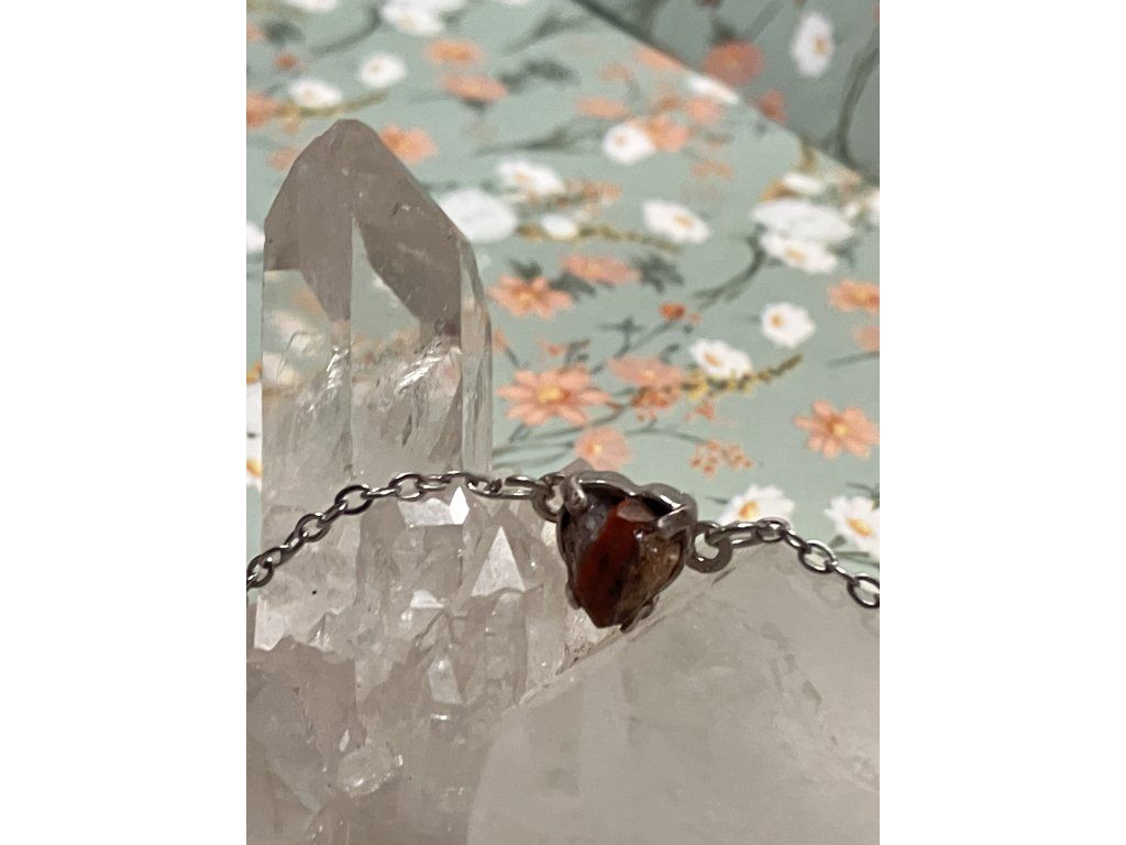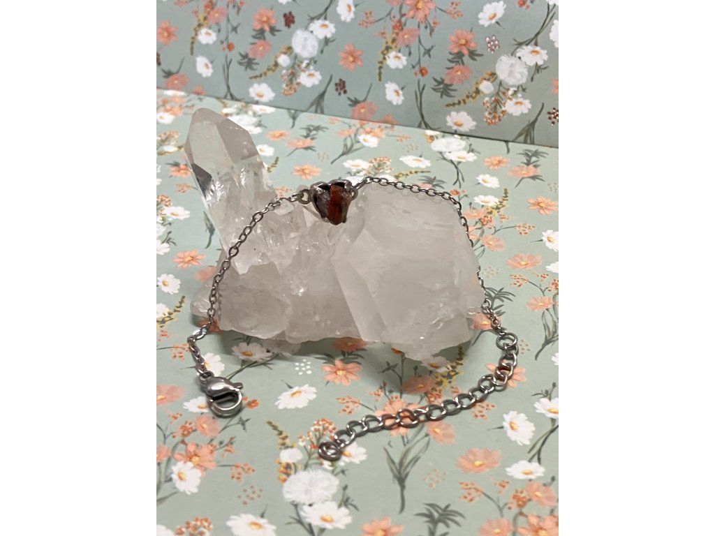 Tento ručně tvořený náramek nese energii stability, ochrany a klidné síly. Achát byl nalezen v oblasti Klášterecké Jeseně, šetrně očištěn a vsazen do lůžka s povrchovou úpravou rhodiem. Jeho jemná, ale pevná energie podporuje vnitřní rovnováhu, pocit bezpečí a ukotvení v přítomném okamžiku. Achát je tradičně spojován s uzemněním, ochranou a schopností procházet změnami s větším klidem.