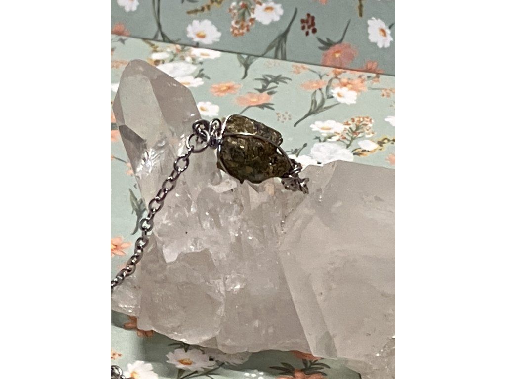 Tento ručně tvořený náramek nese energii síly, ochrany a vědomé stability. Pyrit byl nalezen v oblasti Měděnce, šetrně očištěn a navlečen na nerezový drátek. Jeho výrazná, jiskřivá energie podporuje zdravé hranice, sebedůvěru a pocit vnitřní opory. Pyrit je tradičně spojován s ochranou, vitalitou a schopností stát pevně ve své energii, aniž bychom se nechali vyčerpávat okolím.