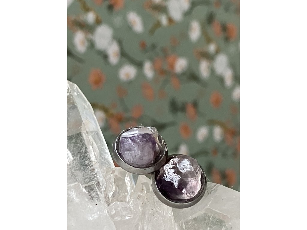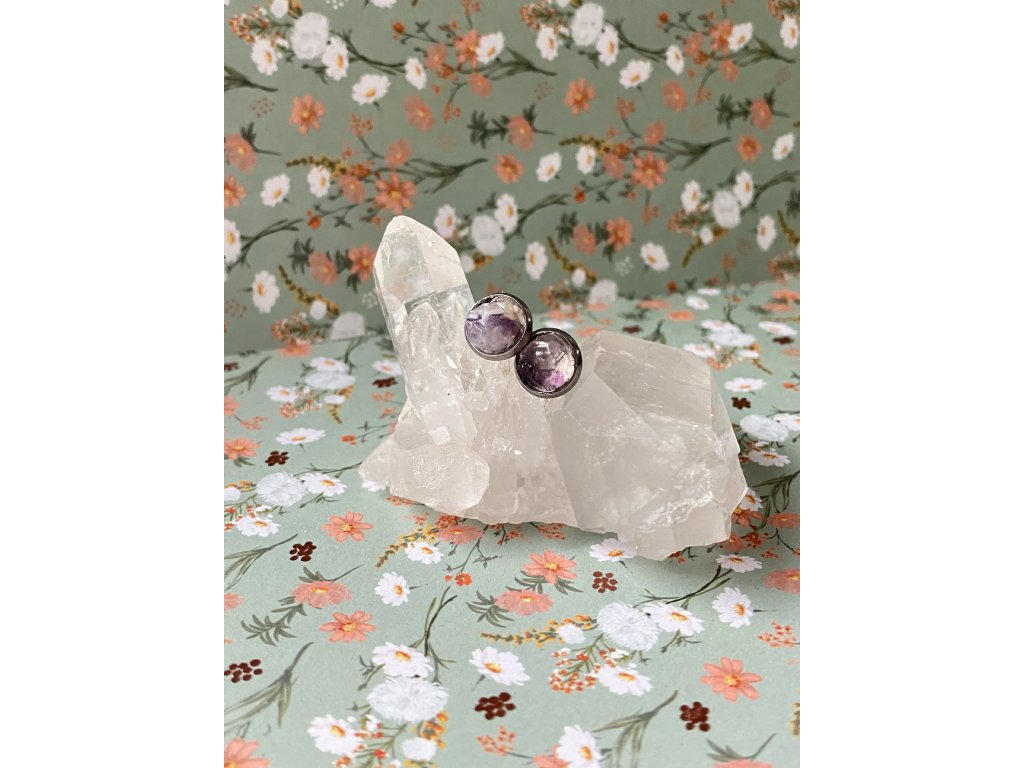 Každý ametyst je ručně broušen, aby vynikl jeho přírodní tón a vnitřní záře. Kameny jsou zasazeny do chirurgické oceli, která je hypoalergenní, pevná a vhodná pro každodenní nošení. Elegantní jednoduchost kovu nechává ametyst zazářit a vytváří krásný kontrast mezi chladnou ocelí a teplou, duchovní energií kamene.