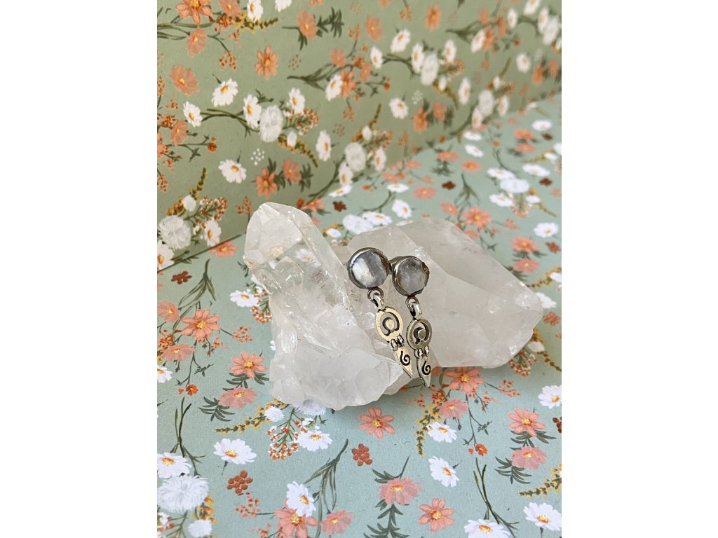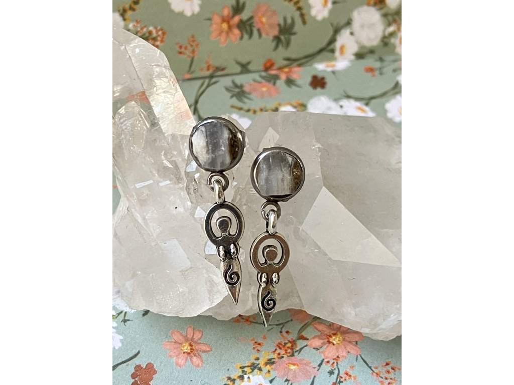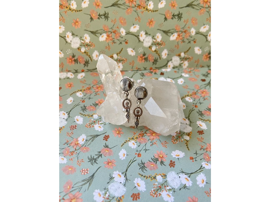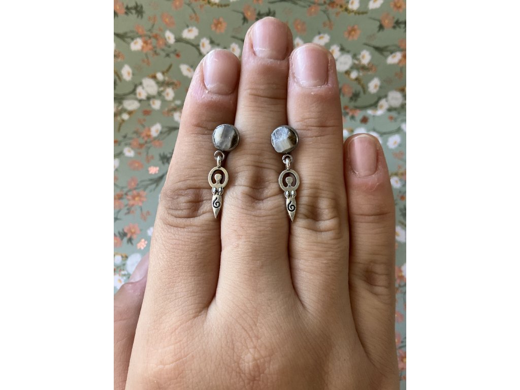 Náušnice se šedým chalcedonem z okolí Ahníkova