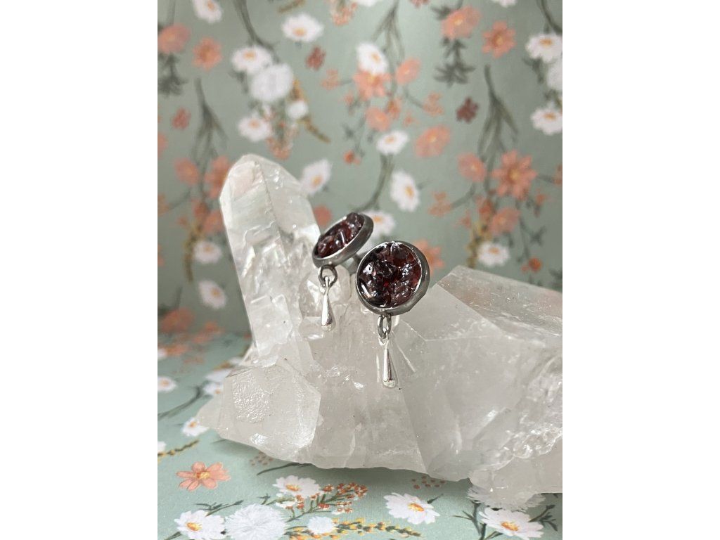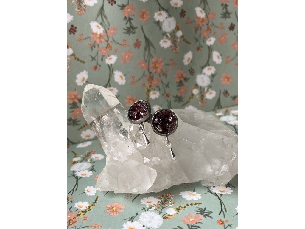 Tyto jemné, ale výrazné náušnice vznikly spojením přírodních granátů z kopce Linhorka a ruční práce. Sytě červené krystalky v sobě nesou hlubokou, zemskou energii a působí hřejivě, vášnivě a zároveň stabilně. Každý pár je originál – velikost, tvar i usazení granátů se liší kámen od kamene a vytváří tak jedinečný šperk s vlastním příběhem.