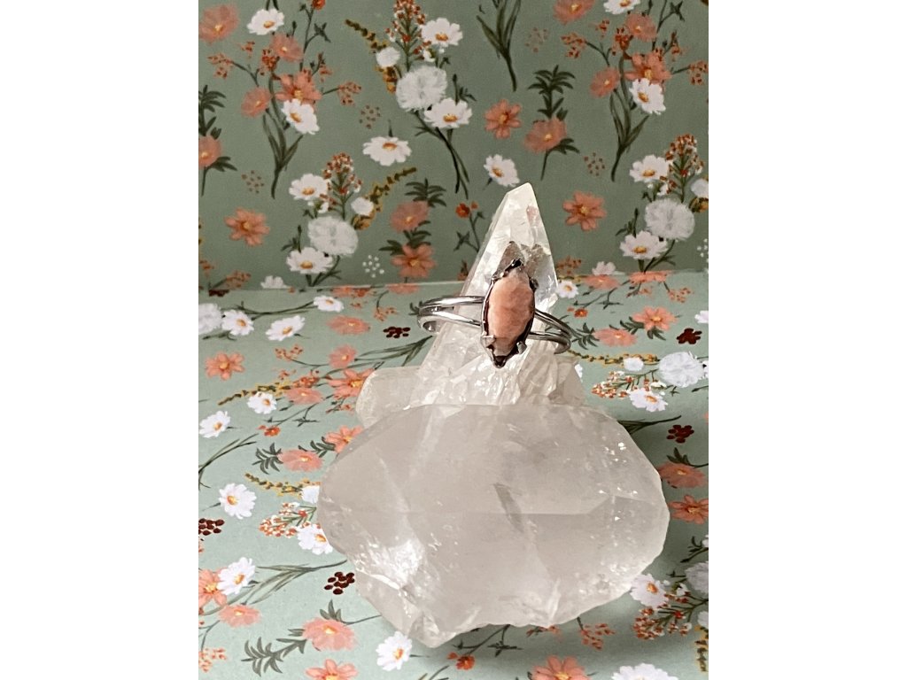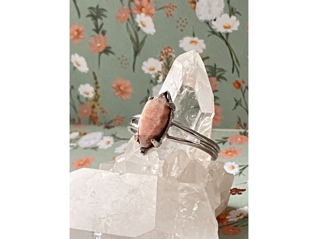Ručně tvořený prsten s barytem nalezeným v Krušných horách. Vsazený do hypoalergenního rhodia. Šperk pro uzemnění, pocitu bezpečí při úzkostech, vnitřní ticho.