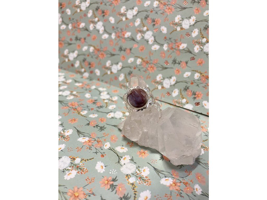 Tento výrazný prsten vznikl spojením fialového chalcedonu z oblasti Ahníkova a ruční práce. Jemné fialové až hnědavé odstíny kamene působí tajemně, klidně a zároveň velmi přirozeně. Každý kus je originál – tvar, kresba i barevné přechody chalcedonu se liší kámen od kamene a vytváří tak jedinečný šperk s vlastním příběhem.