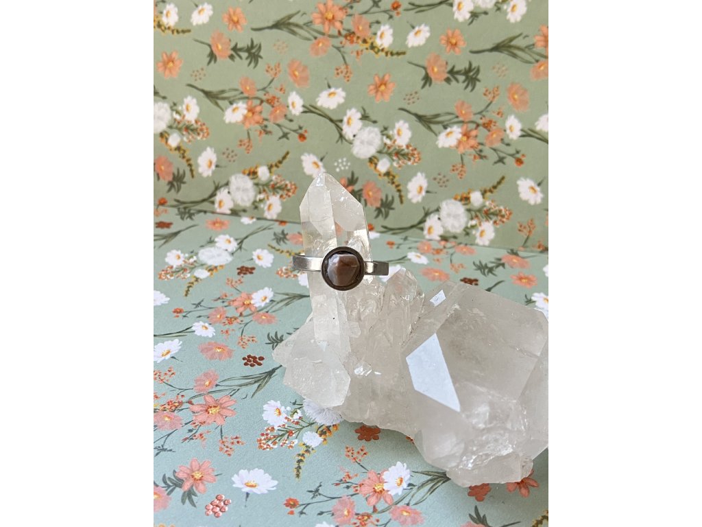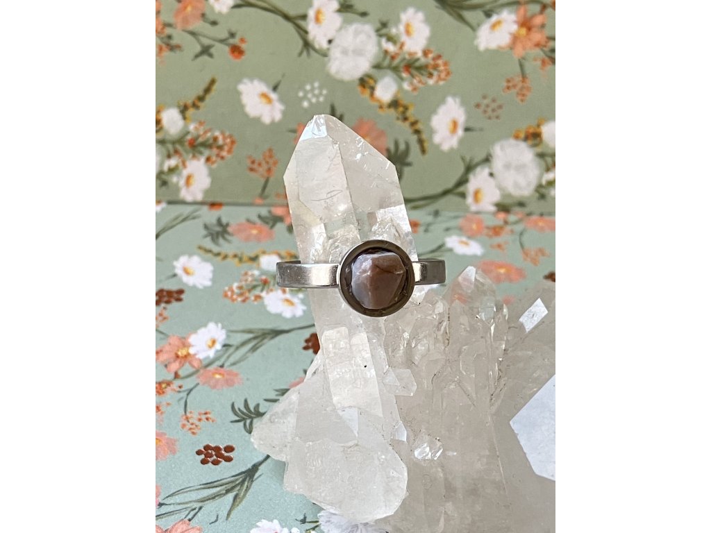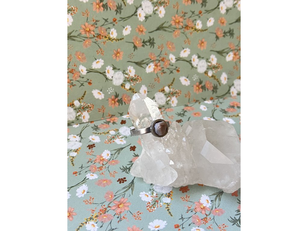 Šedohnědý chalcedon, který zdobí tento prsten, jsem osobně nalezla v tichém koutě přírody poblíž Ahníkova – místě, kde země šeptá příběhy klidu, trpělivosti a tiché síly. Každý kámen je jedinečný – se svou specifickou strukturou, zemitým odstínem a energií místa, kde vznikl. Tento prsten je výsledkem spojení mezi klidem přírody a pečlivou lidskou rukodělnou prací.
