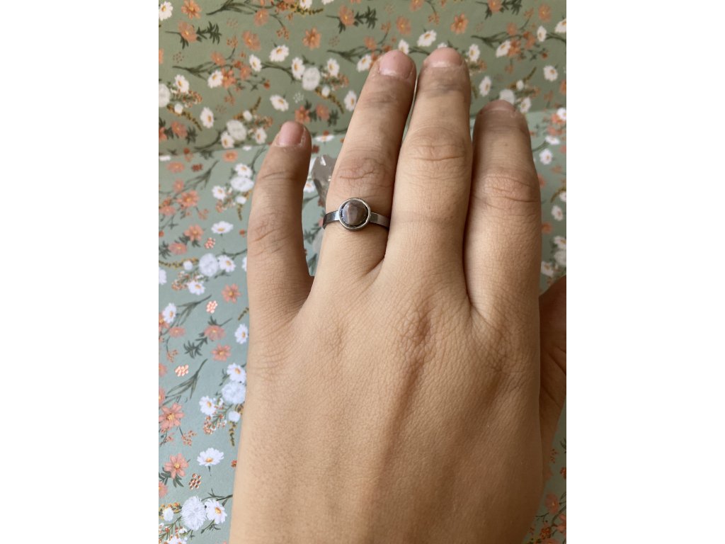 Kámen byl šetrně očištěn, vybroušen do jemného a harmonického tvaru a následně vyleštěn tak, aby vynikl jeho přirozený lesk a klidná barva. Je zasazen do hypoalergenní nerezové oceli – pevného, odolného materiálu, který je ideální pro každodenní nošení. Výsledný prsten je elegantní, pohodlný a zároveň nese v sobě hluboký energetický klid.