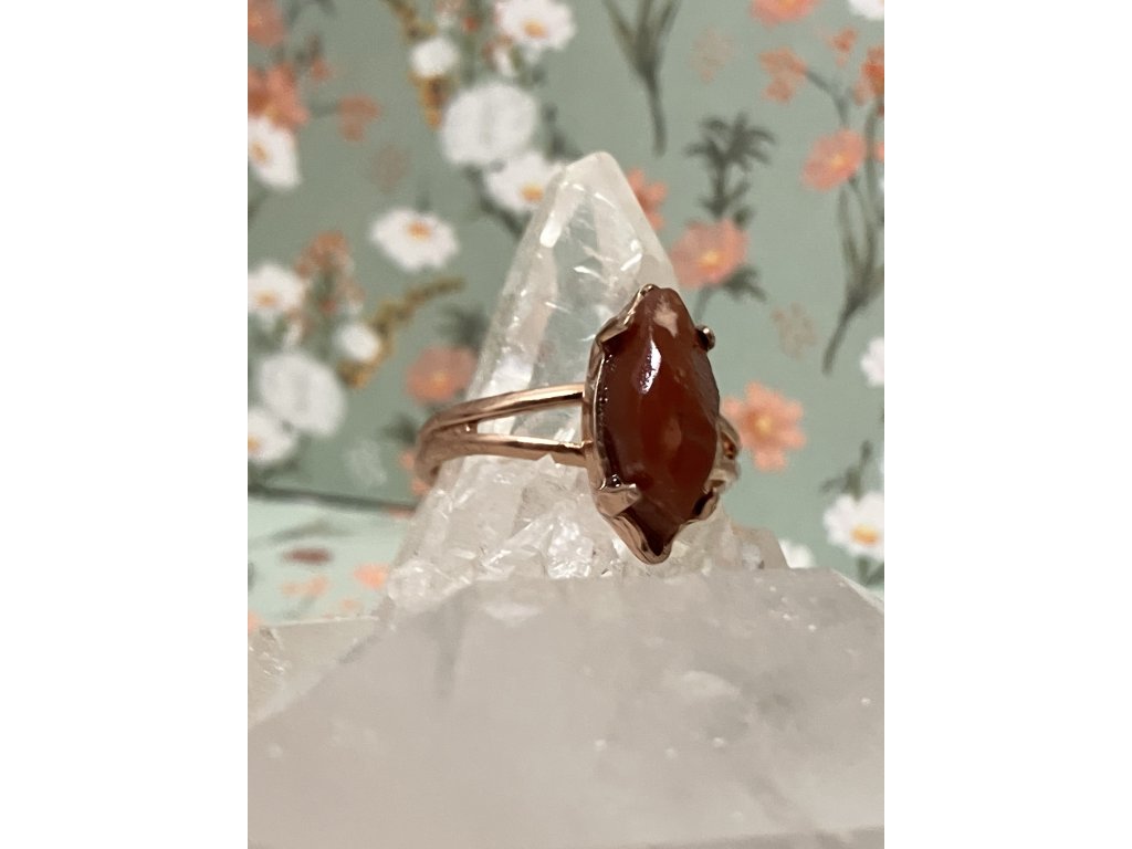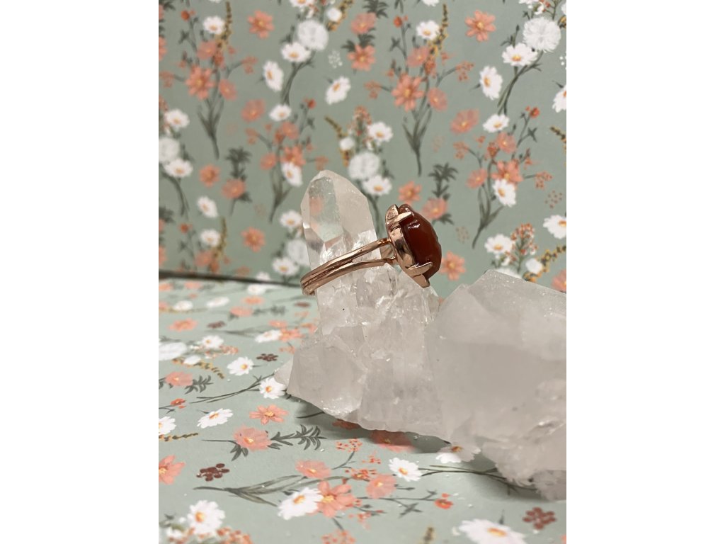 Tento prsten v sobě nese hřejivou, povzbuzující energii karneolu – kamene, který podporuje vitalitu, odvahu a radost ze života. Pomáhá probudit vnitřní oheň, dodat sebedůvěru a chuť jednat v souladu se sebou. Jeho teplé oranžovo-červené odstíny symbolizují pohyb, tvoření a propojení s vlastní životní silou.