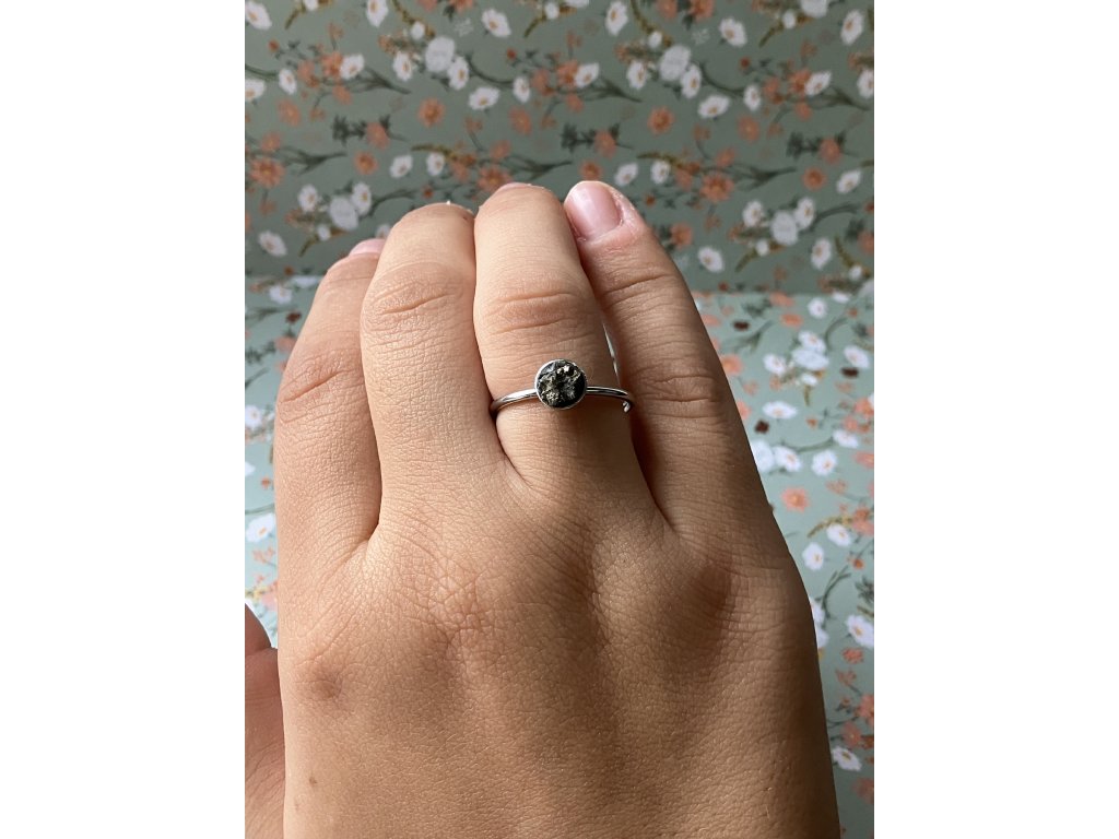 Každý krystal pyritu je zasazen do prstenu z hypoalergenní nerezové oceli, která je odolná, nečerná a je ideální pro každodenní nošení. Díky ručnímu uchycení zůstává kámen výrazný, ale zároveň pevně usazený – prsten tak propojuje přírodní sílu s minimalistickým designem.