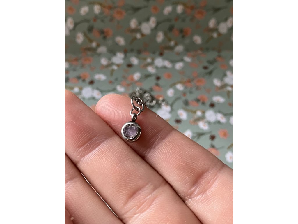 Ručně broušený ametyst je zavěšen na jemném, ale odolném řetízku z nerezové oceli, která je hypoalergenní a vhodná pro každodenní nošení. Kov krásně ladí s fialovým odstínem kamene a nechává vyniknout jeho přirozený lesk i hloubku.
