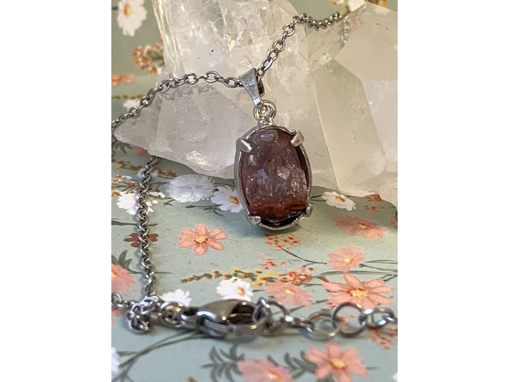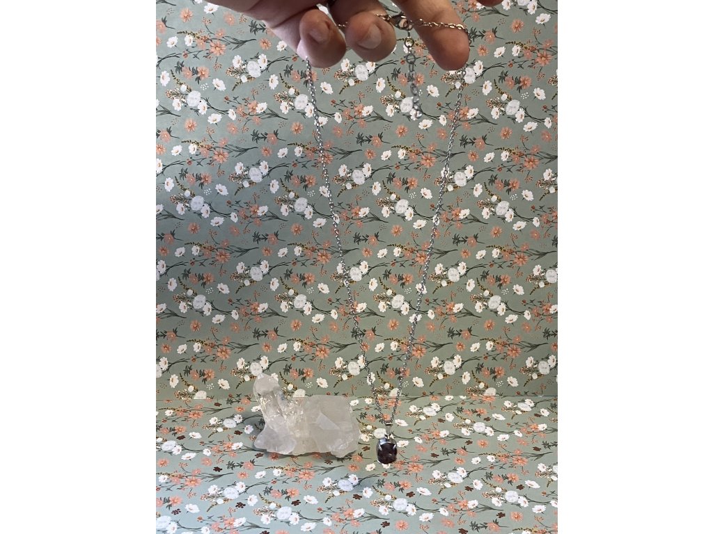 Zpracování: ručně broušený kámen v rhodiovaném lůžku na nerezovém řetízku