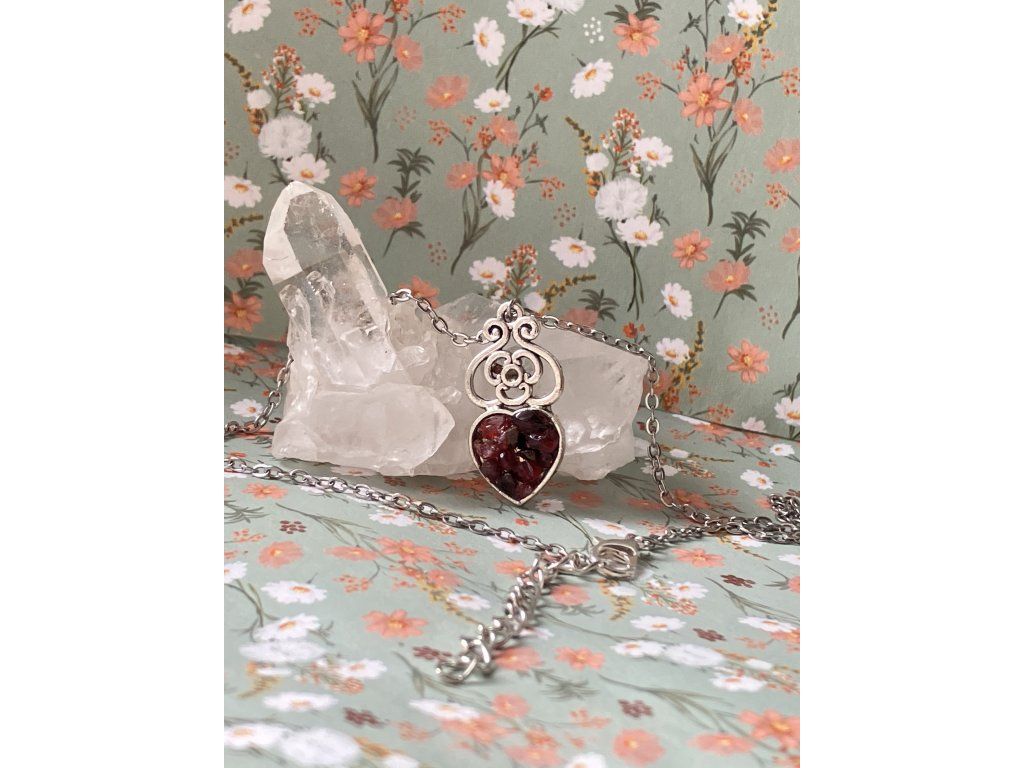 Tento jemný řetízek vznikl spojením přírodních granátů z kopce Linhorka a ruční práce. Každý kámen je originál s vlastní kresbou a hlubokým červeným odstínem, který zvýrazňuje jeho silnou a vášnivou energii. Granát je tradičně spojován se životní silou, odvahou a vnitřním ohněm.