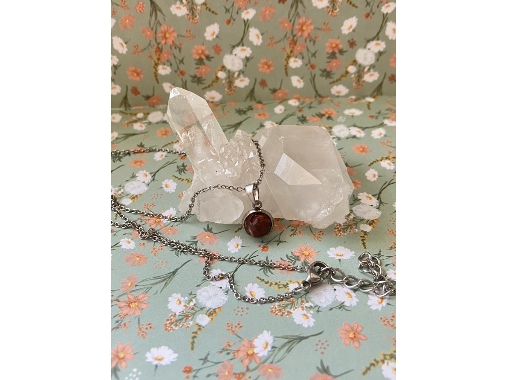 Tento ručně opracovaný jaspisový přívěsek je nabitý energií země, ze které pochází – kámen byl nalezen v Klášterecké Jeseni, pečlivě očištěn, vybroušen a zasazen do jemného řetízku z nerezové oceli.