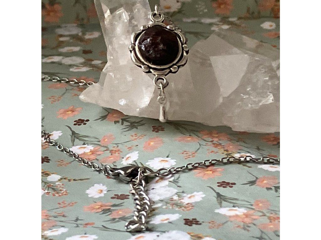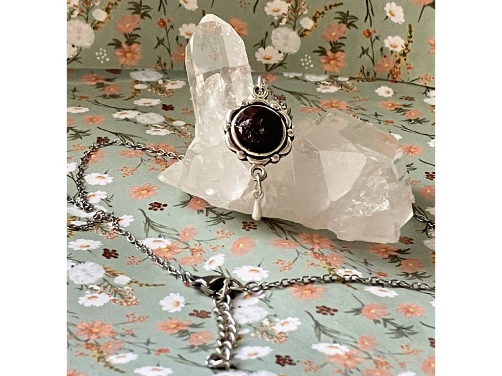 Zpracování: broušeno a vsazeno do celonerezového lůžka a řetízku