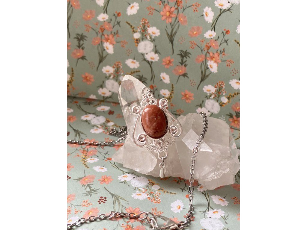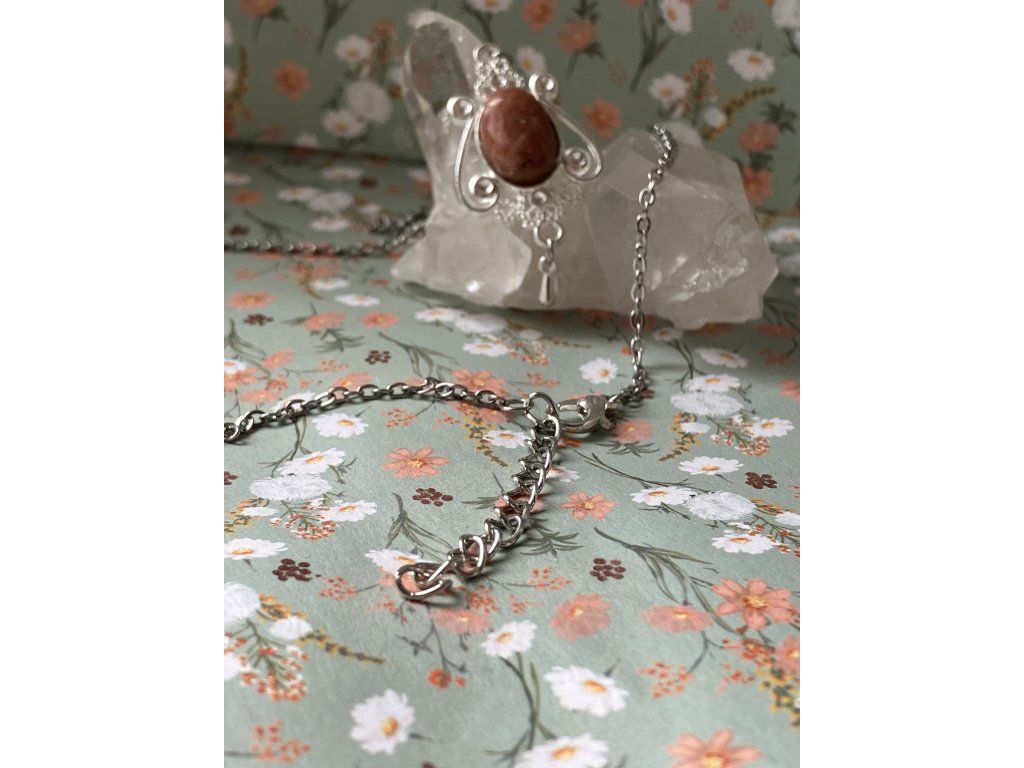 Tento jemný řetízek vznikl spojením přírodního karneolu z Ahníkova a ruční práce. Každý kámen je originál s vlastní kresbou a teplým oranžovo-červeným odstínem, který podtrhuje jeho živou a tvořivou energii. Karneol je tradičně spojován s odvahou, životní silou a podporou kreativity.