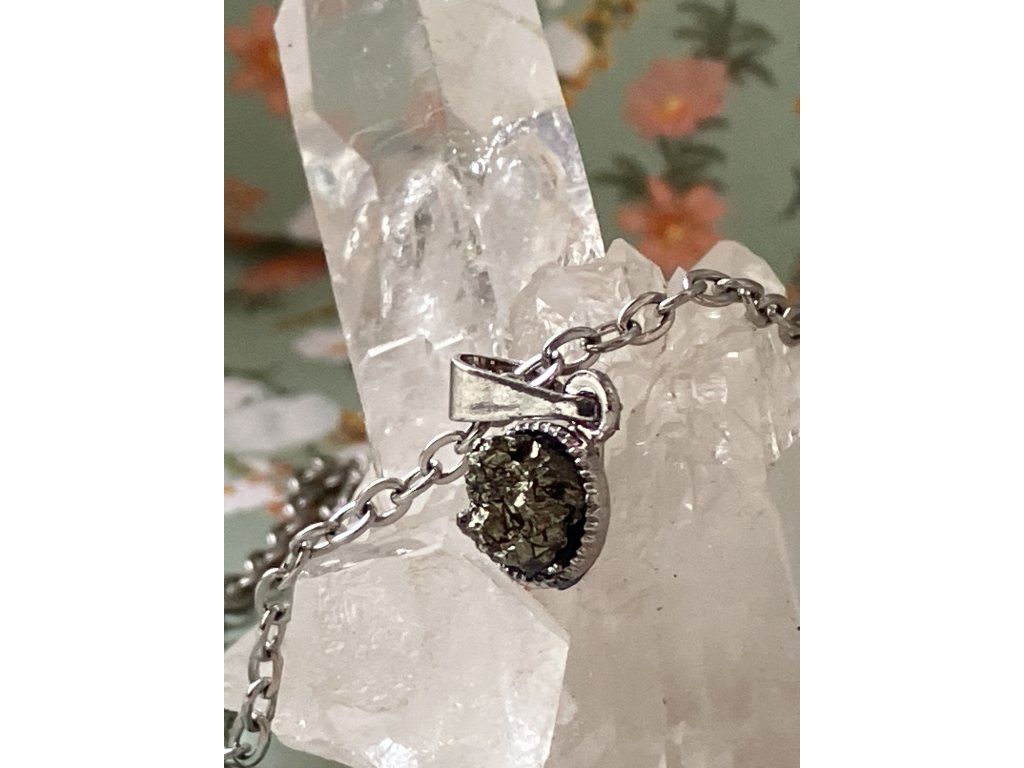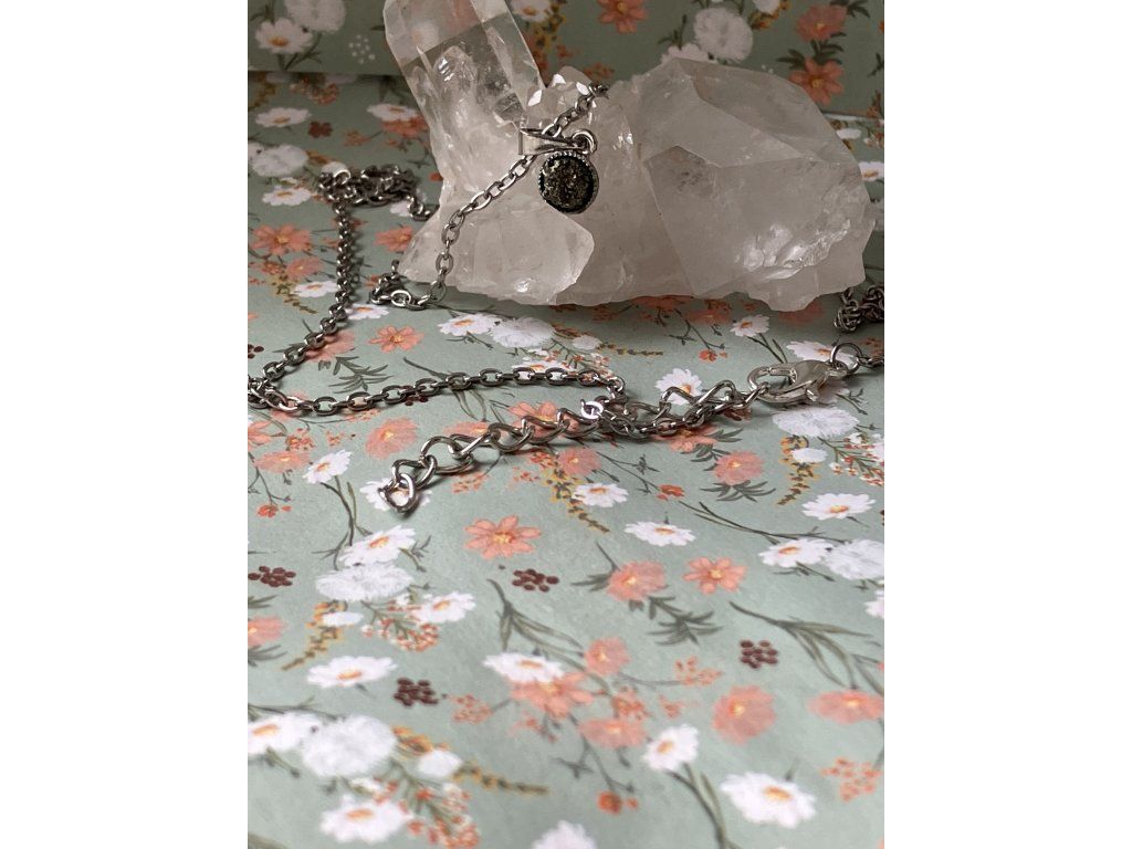 Tento jemný řetízek vznikl spojením přírodního pyritu z okolí Měděnce a ruční práce. Každý kámen je originál s vlastní strukturou a kovovým leskem, který podtrhuje jeho silnou a ochrannou energii. Pyrit je tradičně spojován se sebedůvěrou, vnitřní silou a podporou životní vitality.